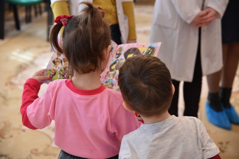 Pentru început, mediciniştii au făcut cunoştinţă cu copiii, după care le-au împărţit darurile, iar micuții, în schimb, le-au recitat poezii și s-au împărtășit cu preferințele lor. Copii au primit jocuri educative şi interactive, rechizite, jucării pentru stimularea dezvoltării lor fizice, cognitive și a celei psiho-emoționale.