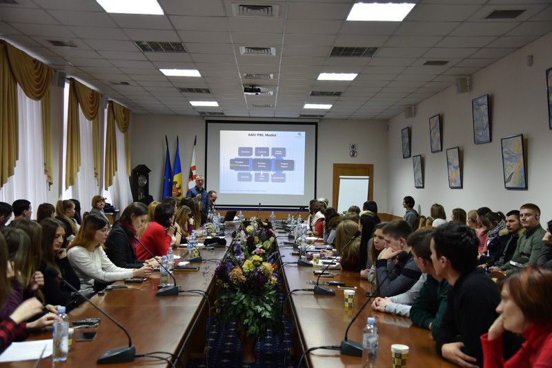 Coordonatorul proiectului Problem Based Learning (PBL) Romeo Țurcan, profesor la Universitatea Aalborg din Danemarca, şi colegul său Michael Fast au discutat despre metodele și filosofia de învățare activă de tip PBL, centrată pe student și pentru student. „Scopul acestui workshop este de a pregăti studenții pentru mobilitate, de a le arăta cum se integrează metodologia și design-ul cercetării pe învățarea în Problem Based Learning. Prin activitatea care se va desfășura în echipe, ne dorim ca studenții să se integreze, să negocieze și să înțeleagă necesitatea unui portofoliu personal bogat de cunoștințe pe diferite domenii și probleme”, a menţionat profesorul Țurcan.