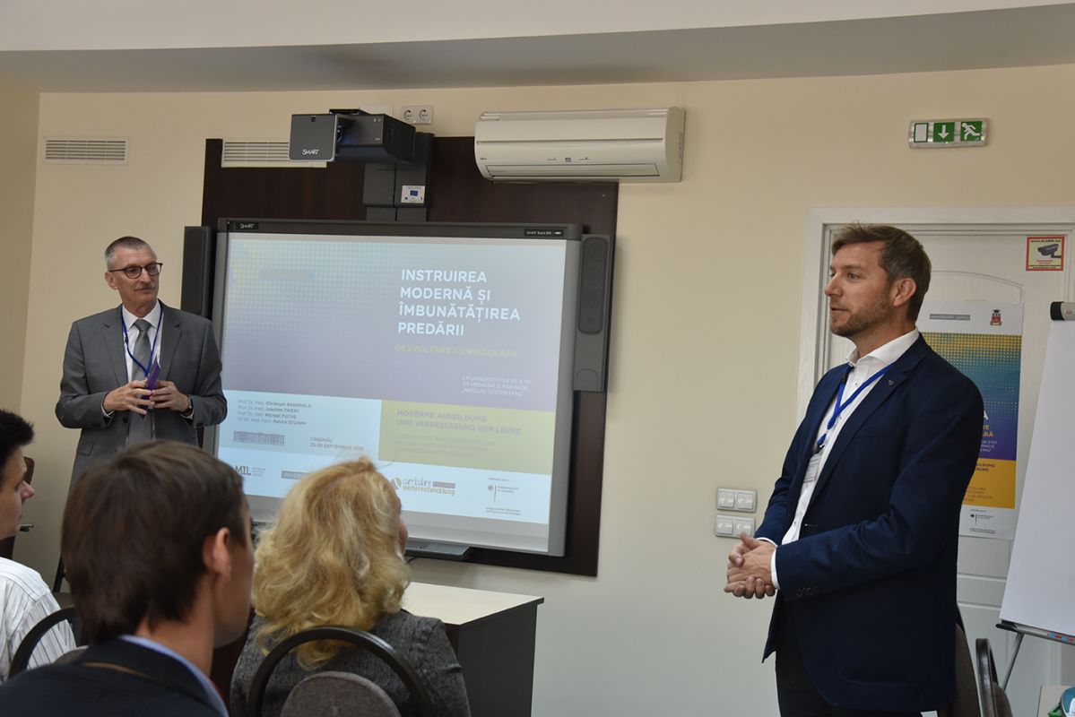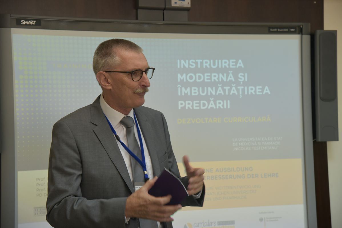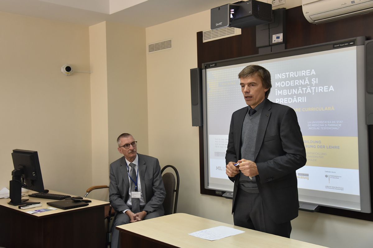 Un grup de cadre științifico-didactice din cadrul Universității de Stat de Medicină și Farmacie „Nicolae Testemițanu” au beneficiat de un curs de instruire privind metoda de predare bazată pe descrierea cazurilor cu genericul „Instruirea modernă și îmbunătățirea predării”. Cursul a fost ținut de patru formatori – profesori ai universității noastre instruiți anterior la Leipzig, și susținut de profesori de la Universitatea de Medicină din Leipzig, Germania: Christoph Baerwald, Clinica Universitară; Michael Fuchs, Universitatea de Medicină; Patrick Stumpp, Clinica de Radiologie Diagnostică și Intervențională și Joahimm Tiery, Institutul de Medicină de Laborator. Delegația germană a fost însoțită de profesorul Vasile Dumbravă, vicepreședinte Moldova-Institute Leipzig.
